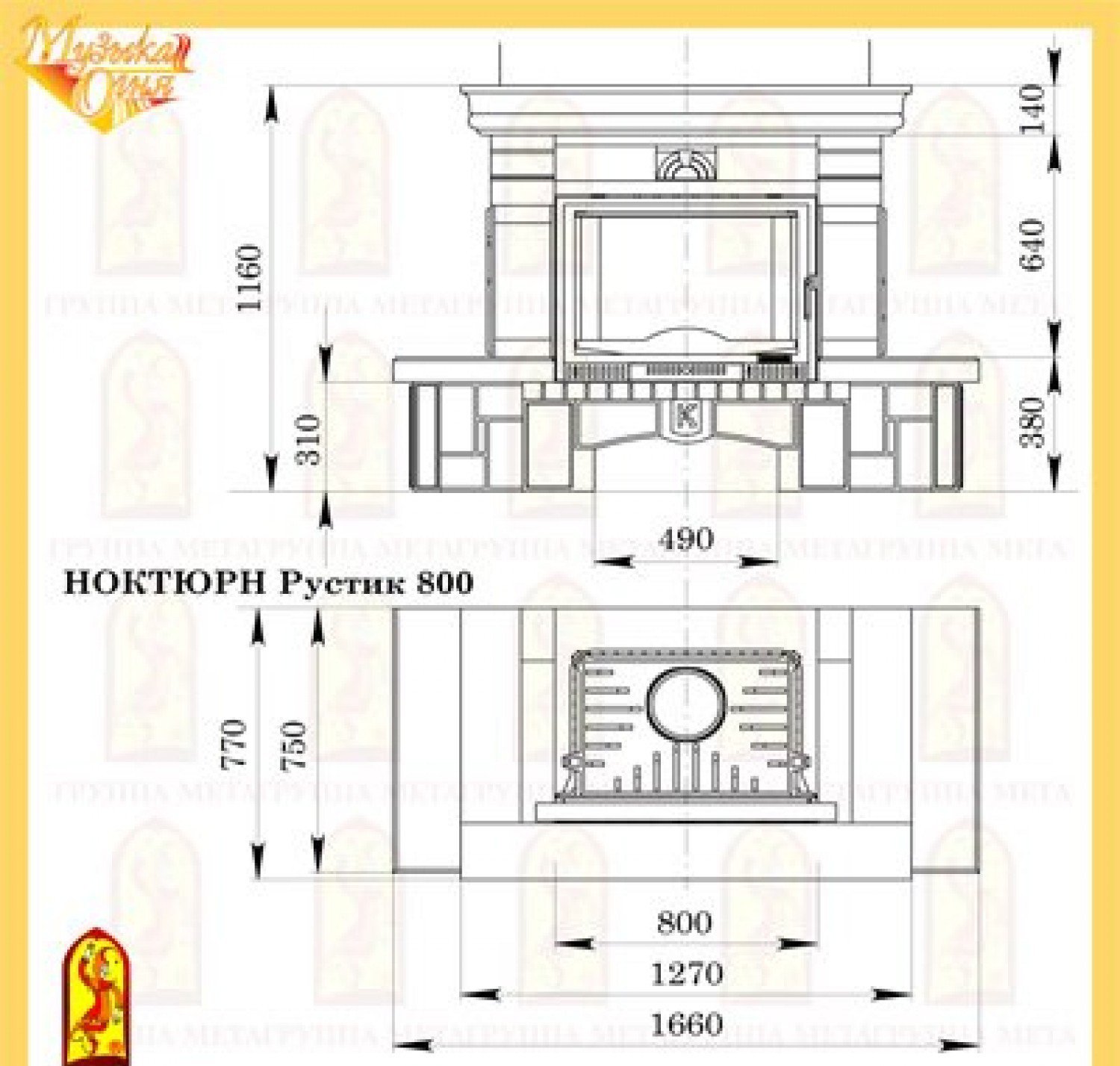 Мета ноктюрн рустик 800 с топкой камилла 800п