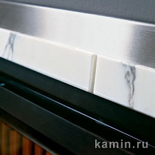 Обрамление из белого узорчатого мрамора Arabescato со вставками из нержавеющей стали.