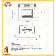 Двухсторонняя каминная топка с прямым стеклом. Топочная камера футерована шамотом. Подъёмный механизм двери (система Easy-Lift) с одной стороны. С другой стороны дверца откидывается для чистки.