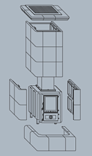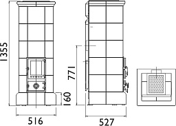 Стекло камина - на три стороны. Выдвижной зольник, регулировочные ручки для управления интенсивностью горения и боковое открытие дверцы. Удобная встроенная ниша для дров. Ручки сделаны из материала с очень высоким порогом термочувствительности, поэтому Вам не следует опасаться ожогом при открытии топочной дверцы.